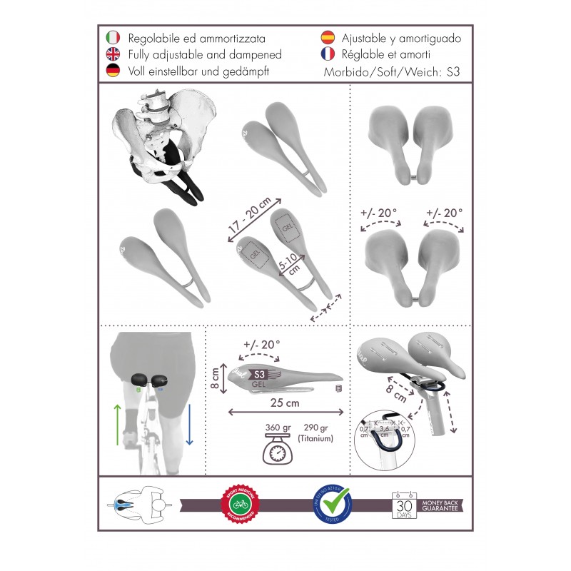 • ENJOY YOUR BIKE - Do you dream of reducing the risks of discomfort and pain of traditional bicycle saddles (Genital numbness, Prostatitis, Vulvites, Dermatitis)? Invest in health with "sellOttO", the bike seat that "does not press the genital area": it combines the pleasure of cycling with a physical well-being. Designed with style and comfort in mind, recommended by Sports Medicine for men and women, in Sport and Leisure Time; if the cyclist's weight exceeds 100 kg, contact us before placing your order.