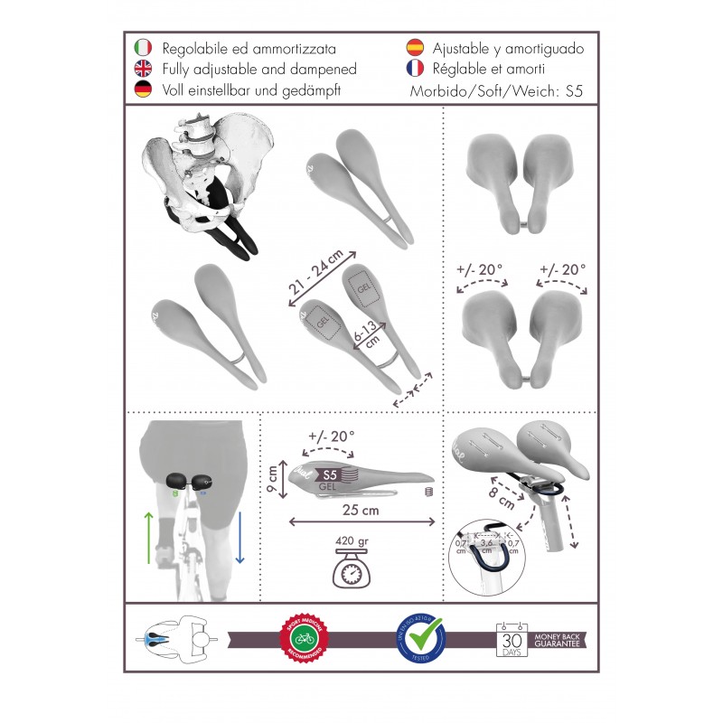 • ENJOY YOUR BIKE - Do you dream of reducing the risks of discomfort and pain of traditional bicycle saddles (Genital numbness, Prostatitis, Vulvites, Dermatitis)? Invest in health with "sellOttO", the bike seat that "does not press the genital area": it combines the pleasure of cycling with a physical well-being. Designed with style and comfort in mind, recommended by Sports Medicine for men and women, in Sport and Leisure Time; if the cyclist's weight exceeds 100 kg, contact us before placing your order.